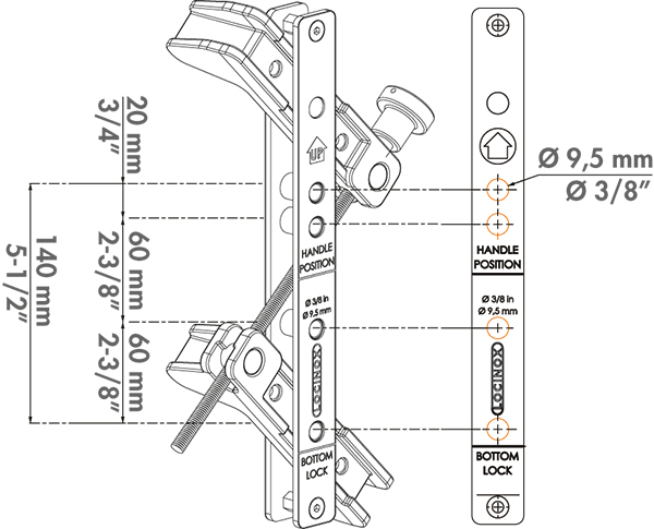• Bohrschablone eignet sich für Rund- und Rechteckprofile von 30 bis 76 mm