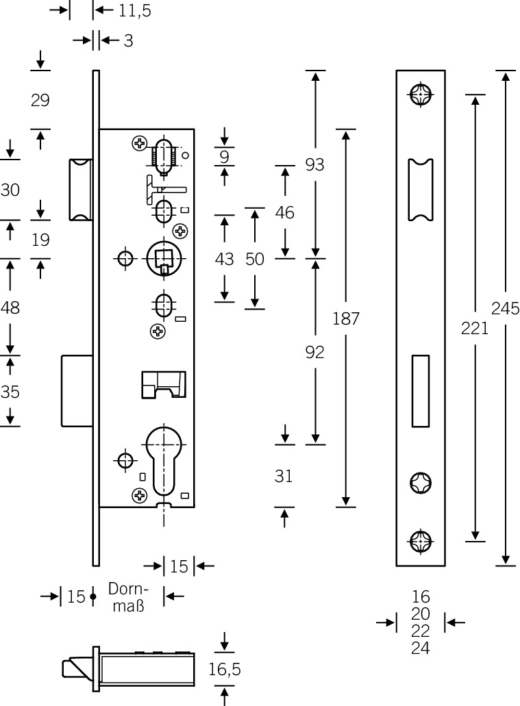 Weiterführende Links zu "Rohrrahmen-Schloss, Dorn 40mm, Stulp VA, Entf. 92mm, RA15m"