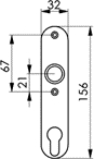 Kurzschild. ovale Form, Werkstoff: Aluminium, EV1 eloxiert (silber),