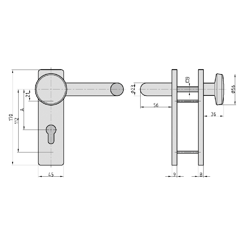 - Drückervierkant 9 mm,