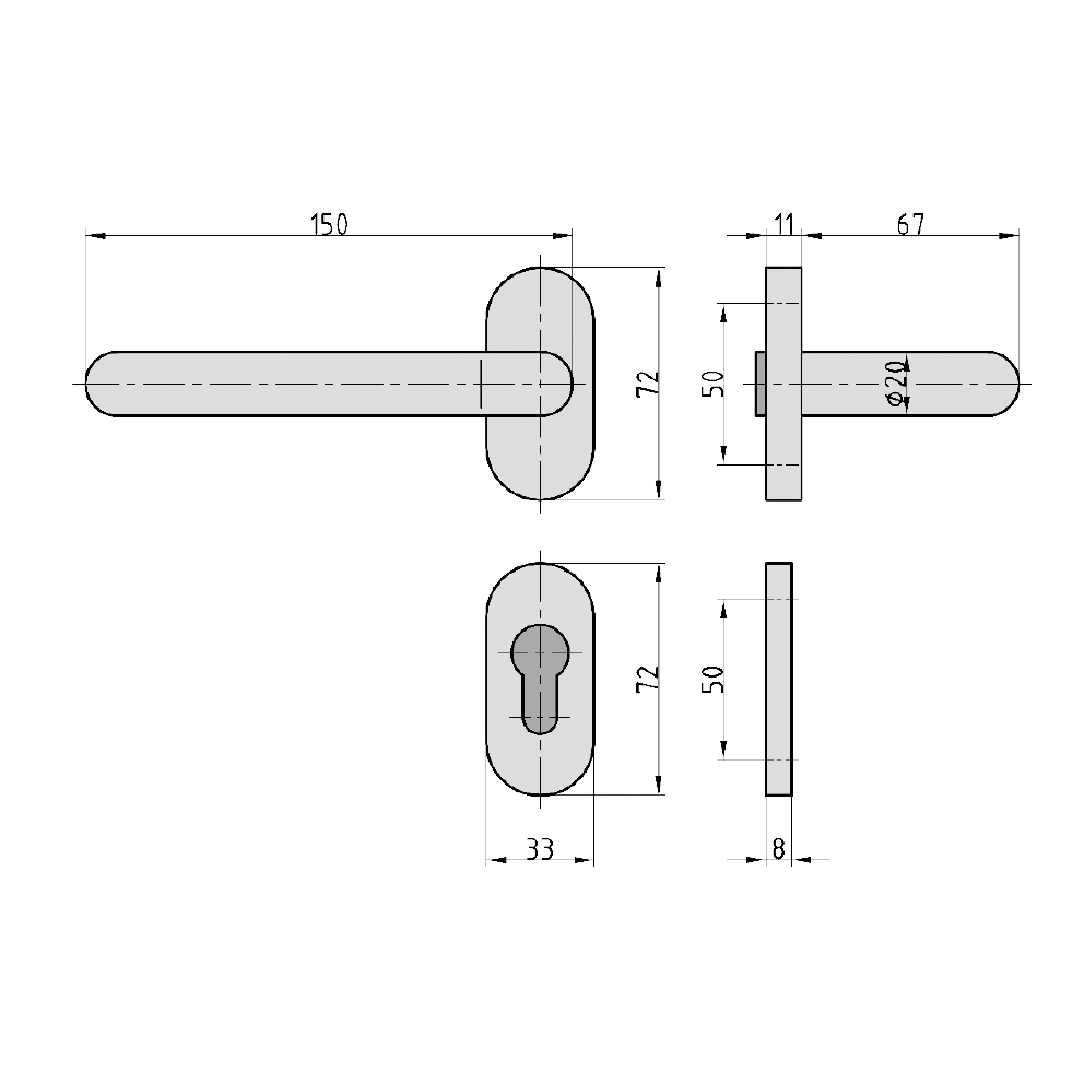- ovale Rosetten verdeckt geschraubt