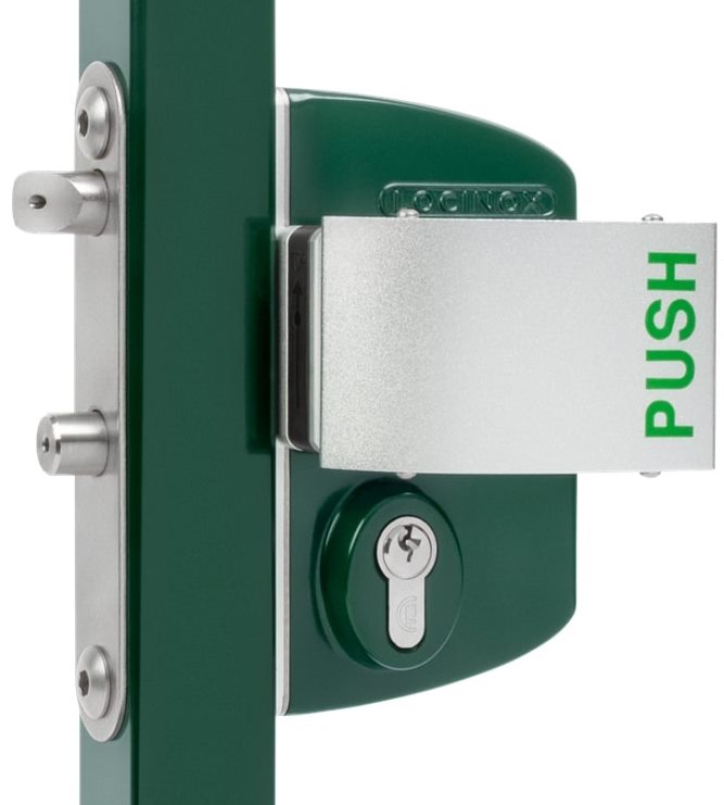 Dieses Schloss ermöglicht immer die freie Passage von innen durch Drückerbetätigung. Von der anderen Seite kann man das Tor immer mit dem Zylinder mechanisch öffnen. Der Schlüssel muss nach dem Abschließen abgezogen werden.