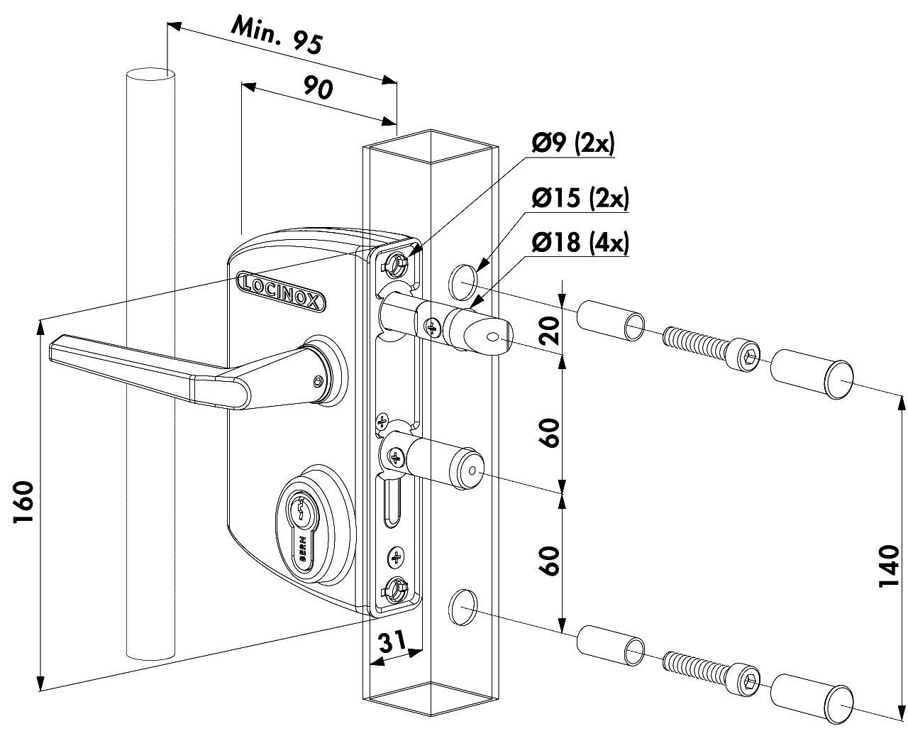 - Riegelverstellbarkeit bis 20 mm ohne Demontage des Schlosses
