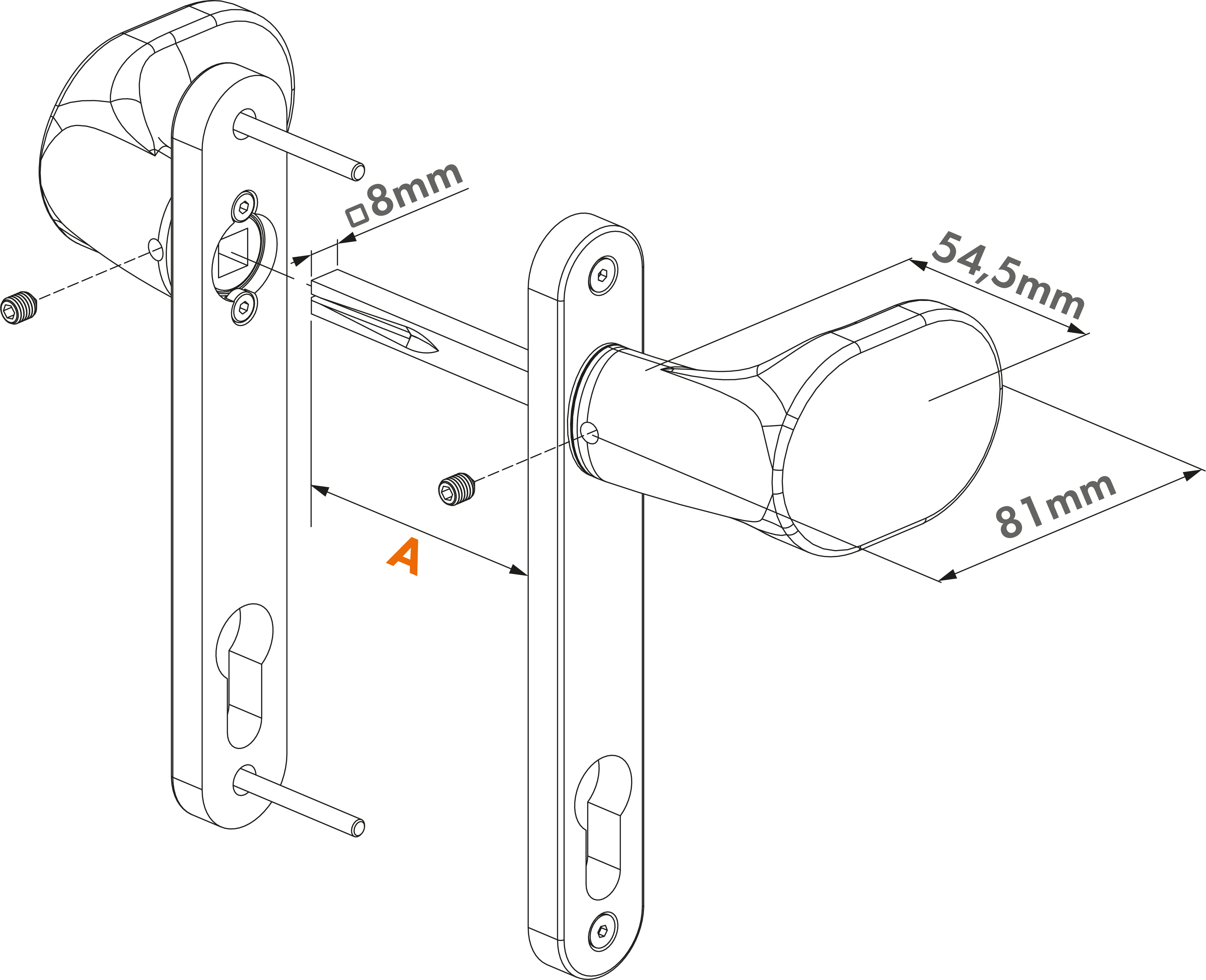 - Langschilder mit Entfernung Zylinder <= > Drücker= 92 mm
