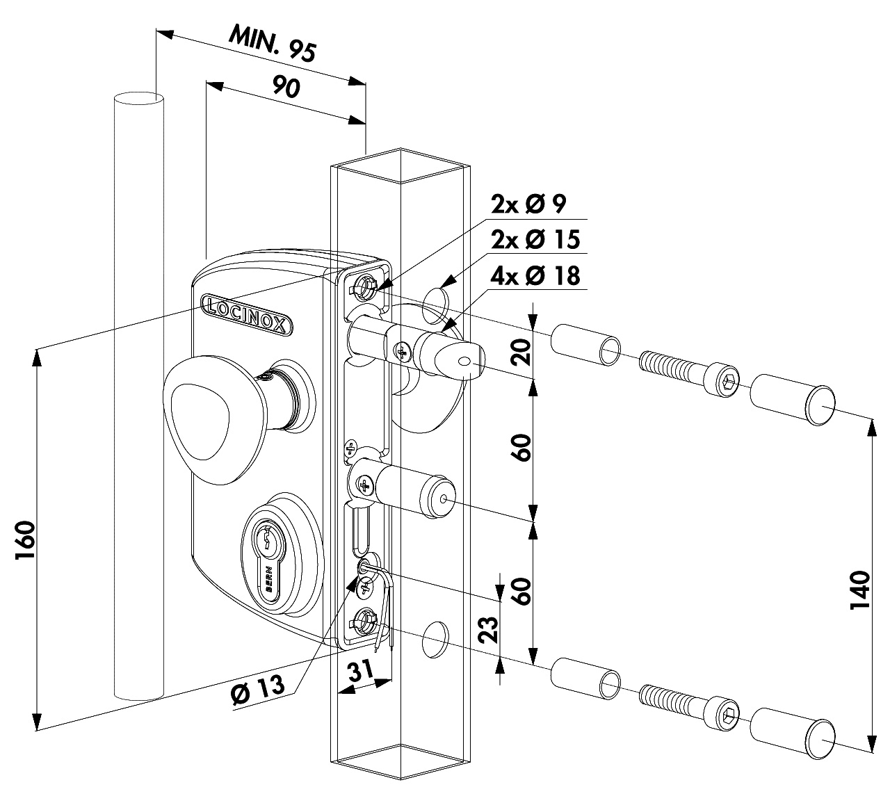• Elektrostatisch lackierter Schlosskasten widersteht 1000 St. Salzsprühnebeltest