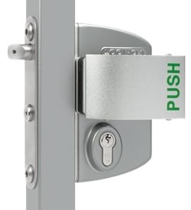 Dieses Schloss ermöglicht immer die freie Passage von innen durch Drückerbetätigung. Von der anderen Seite kann man das Tor immer mit dem Zylinder mechanisch öffnen. Der Schlüssel muss nach dem Abschließen abgezogen werden.