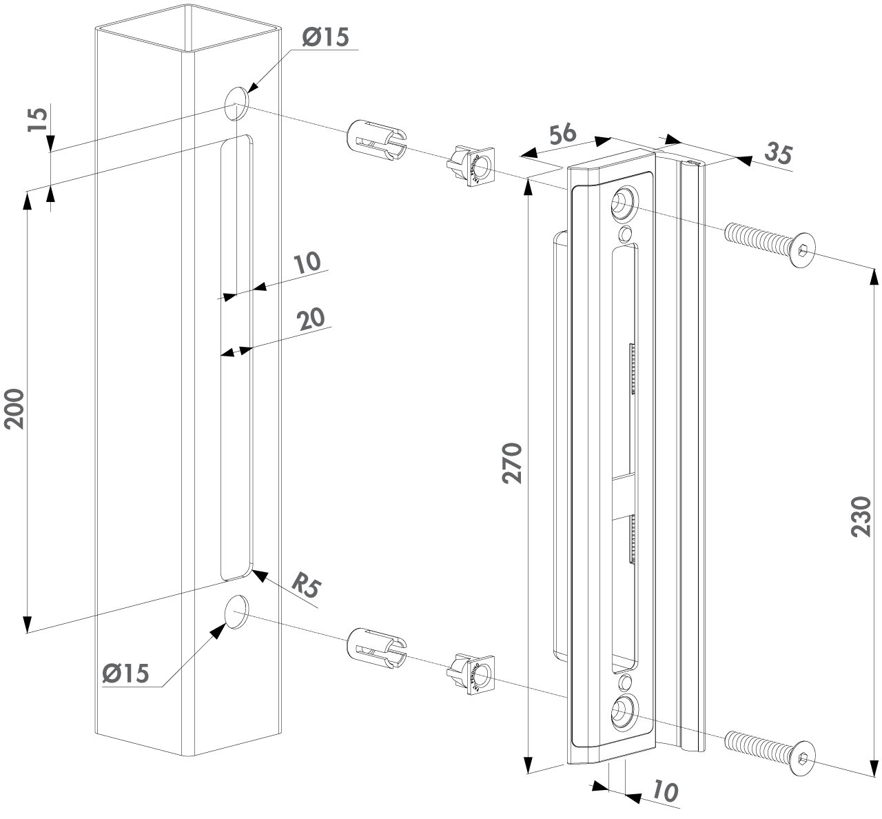 - mit Verankerungsplatte für den Schlossriegel