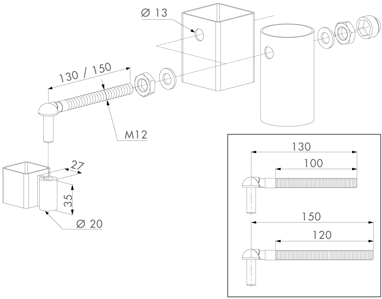 Bolzenlänge 150mm