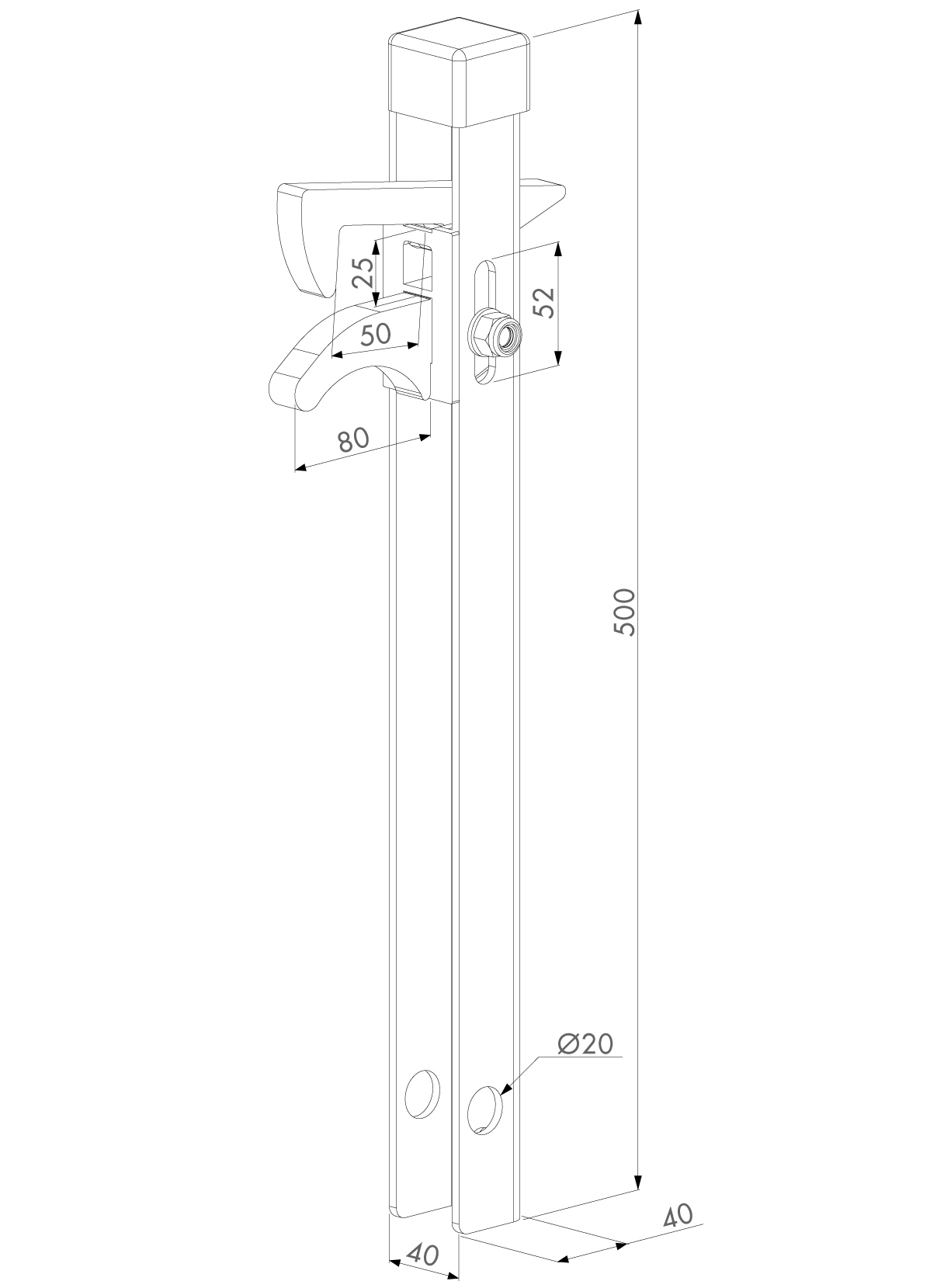 Der ABK wurde entwickelt um einen horizontal angeschweissten Träger zwischen den Stäben aufzufangen.