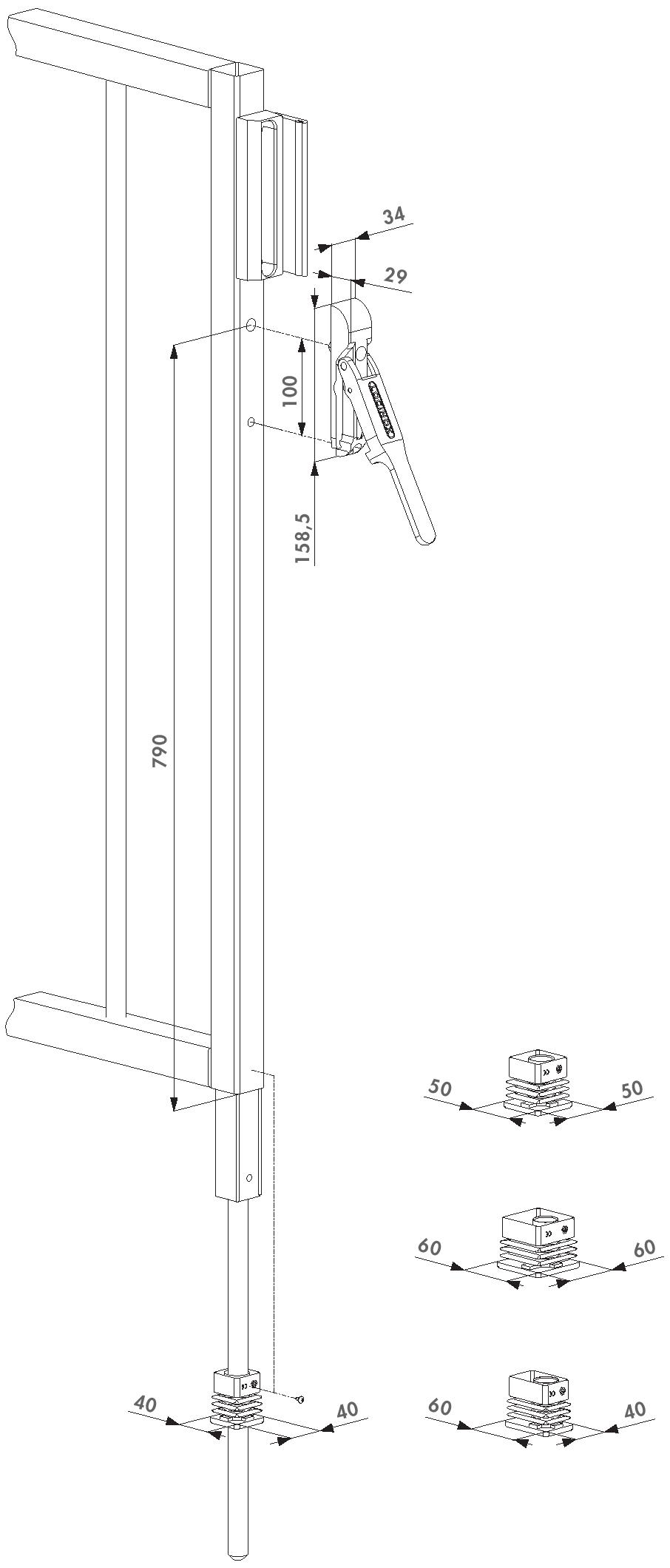 für Quadratrohr 40x40mm, 50x50mm und 60x60mm