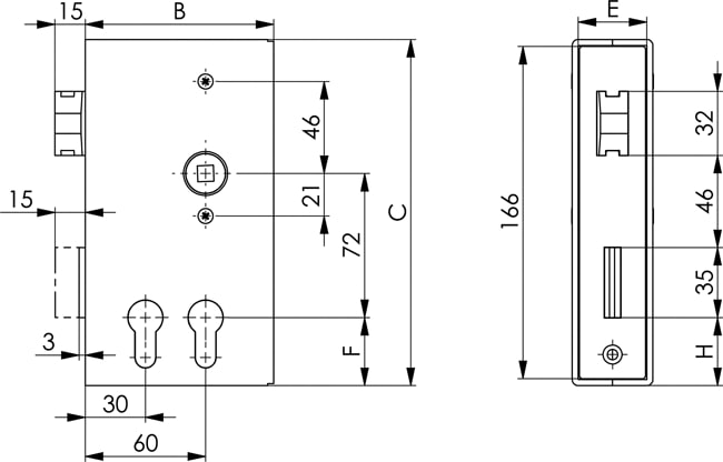 Weiterführende Links zu "Schlossgehäuse 30 mm für 2 Profilzylinder"