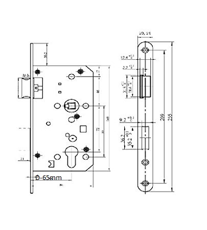 Objekt-Einsteckschloss 347PZW, links Dornmaß 65mm,... mehr