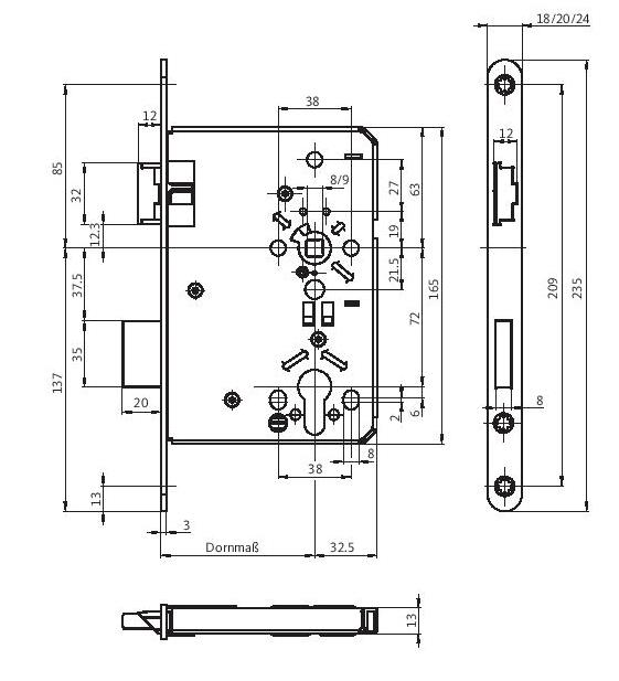 Objektschloss BKS B-0515 Dornmaß: 65mm... mehr