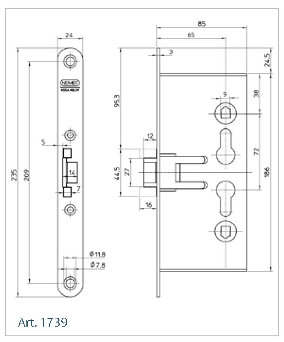 Panikschloss "E" für feuerhemmende Stahltüren 1739/36 - NEMEF