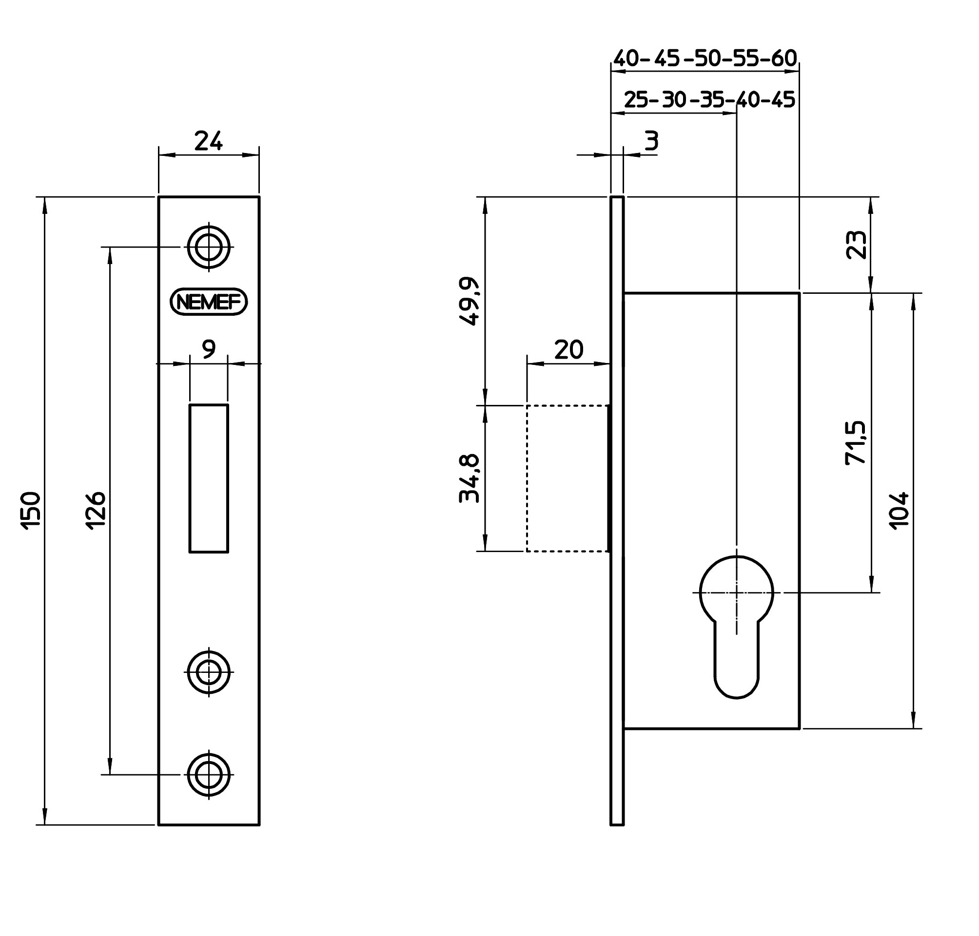 Rohrrahmen-Riegelschloss - Nemef Dornmaß 45mm... mehr