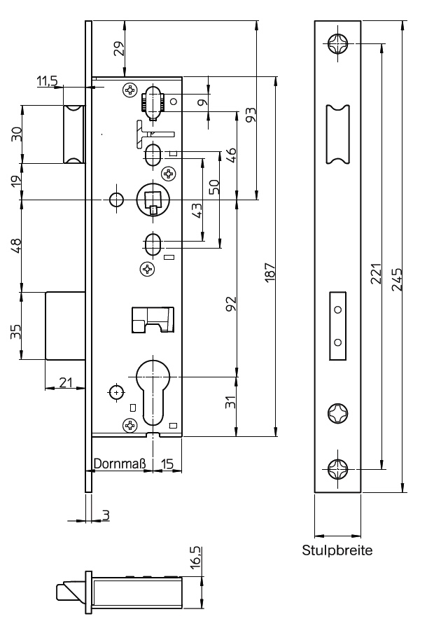 Weiterführende Links zu "Rohrrahmen-Schloss, Dorn 30mm, Stulp VA"