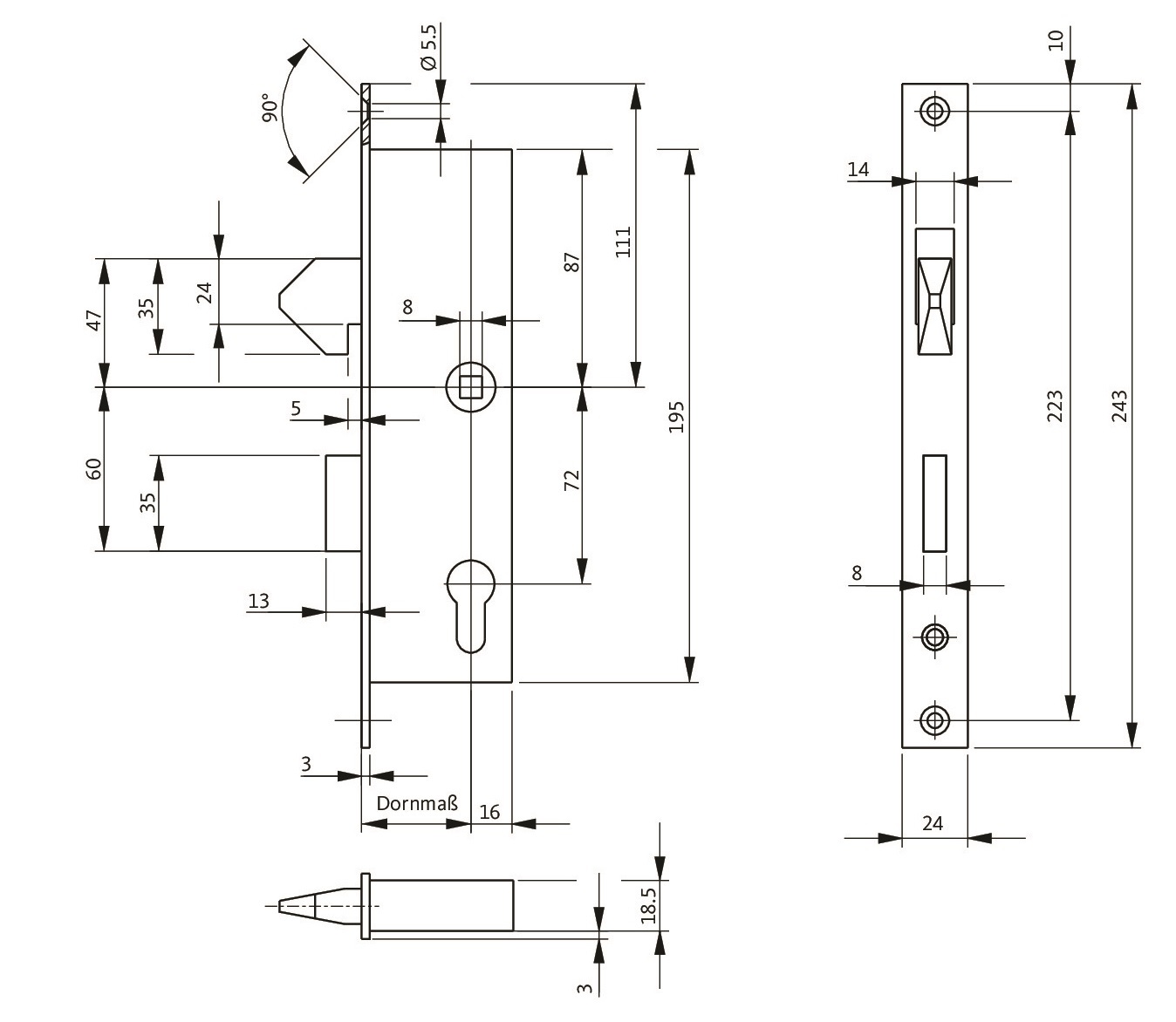 Hakenfallenschloss, 72er - BKS Dornmaß 40mm... mehr